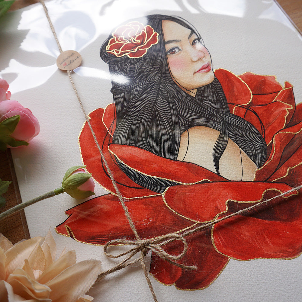 An absolutely beautiful piece! I really like how it’s so different from some of her others while still being her style of art. It looks AMAZING printed! I have a few of her other works and this is the one I have gotten the most compliments on thus far.