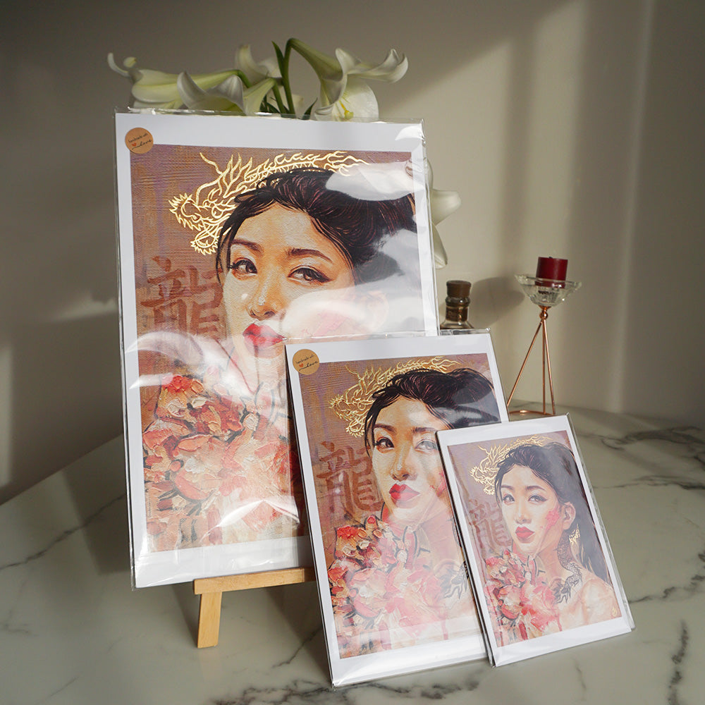 The print itself is gorgeous and high quality so you can see all the original brush strokes and structure. The dragon shimmers through when the light just hits it right, giving the painting a special and mysterious effect.