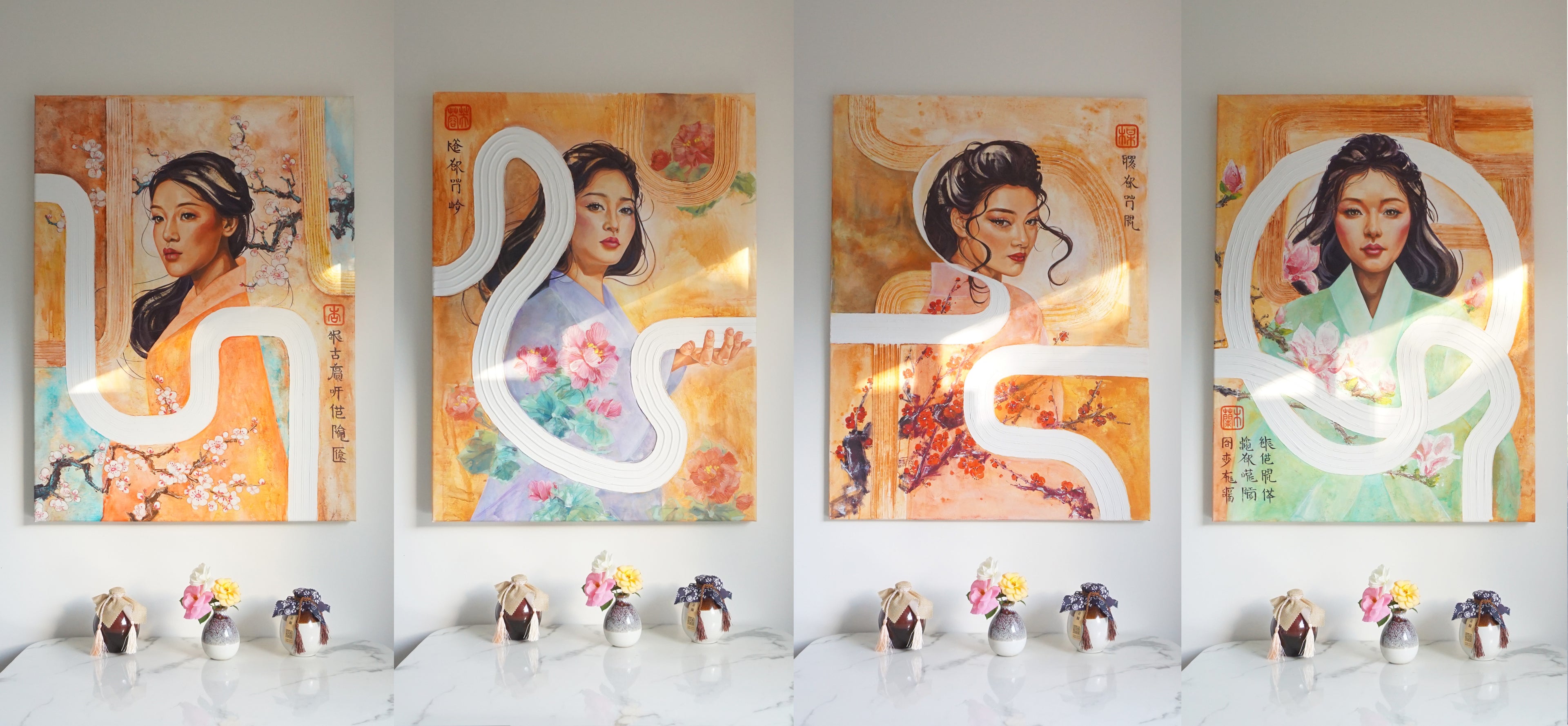 My work is like me. A fusion of East and West, a mishmash of traditional mediums and experimental techniques, the synergy that comes from embracing perfect imperfection. It’s about celebrating strength and vulnerability, resilience and struggle, and freedom that comes from within. If this speaks to you, welcome!