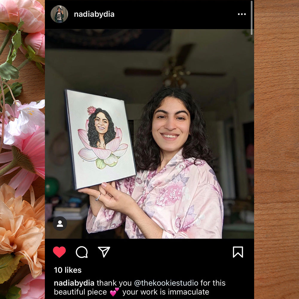 2. Send me an email <natalie@thekookiestudio.com> with your order number, your photo/s, favourite flower, and any other requests including date you need the painting by* or gift messages.