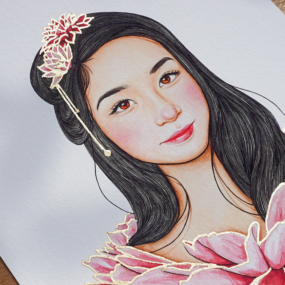 A5, A4 and A3 fine art prints are created by me in the home studio. After a little happy dance, I'll get right on creating for you. Please allow 3-4 business days for embellishment and dispatch.