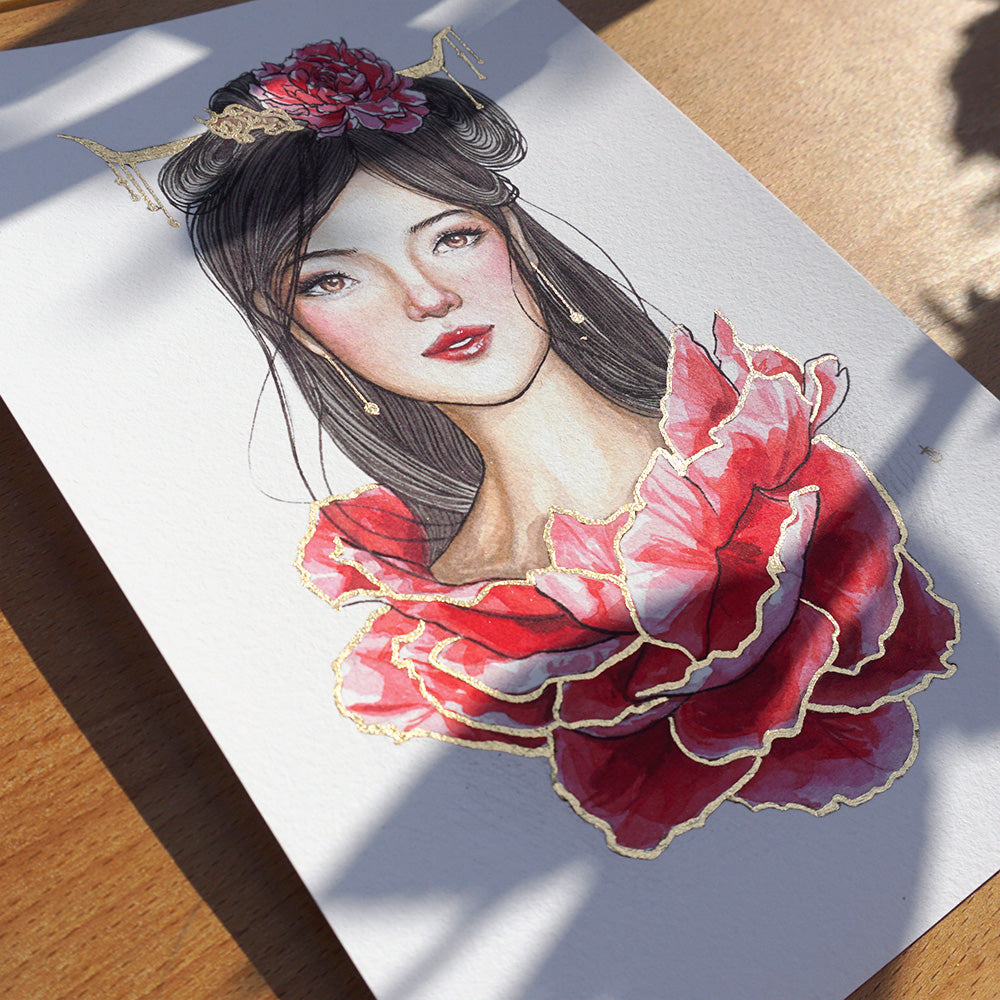 A5, A4 and A3 fine art prints are created by me in the home studio. After a little happy dance, I'll get right on creating for you. Please allow 3-4 business days for embellishment and dispatch.