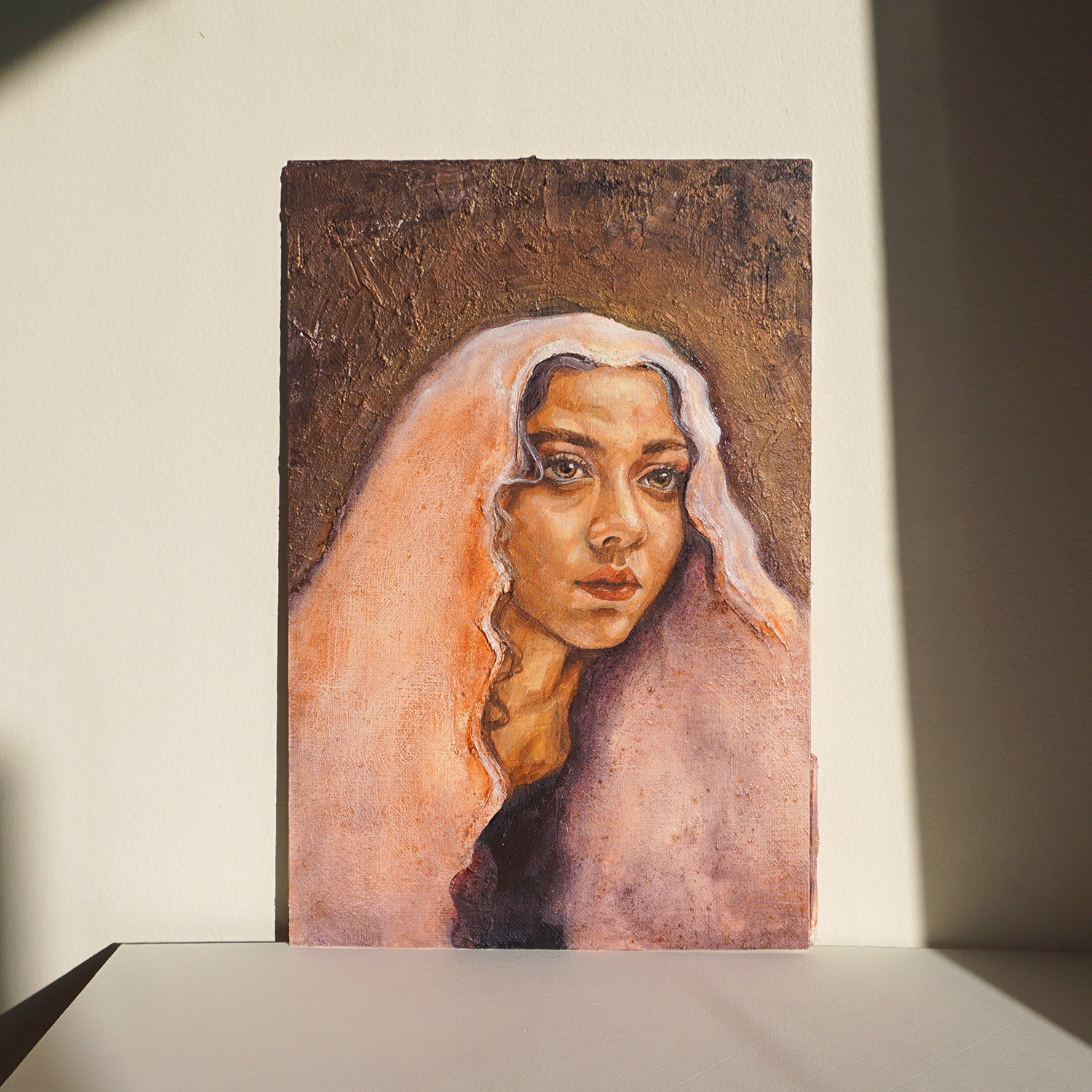 A classical portrait evolved into something magical. I love the powerful, spiritual vibes she's giving. The subtle sheen of metallic gold in the background is just the fantastical cherry on top!