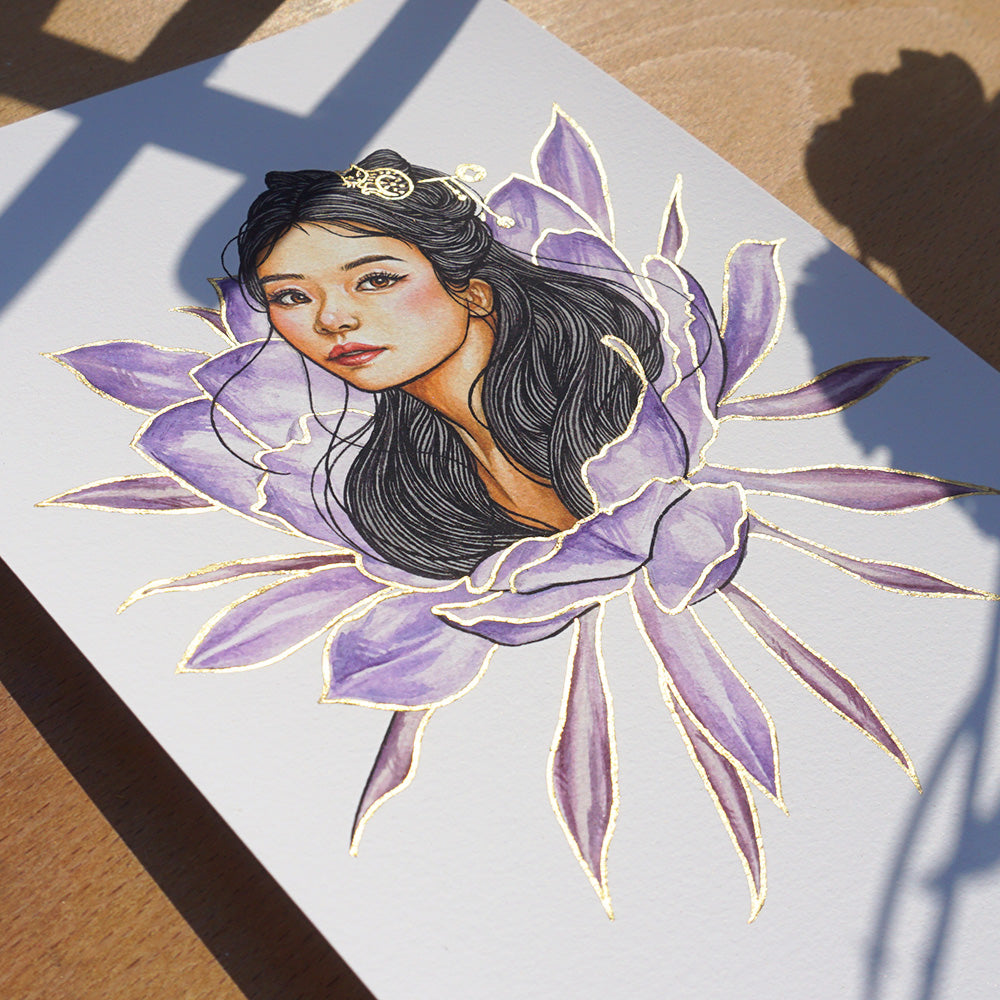 A5, A4 and A3 fine art prints are created by me in the home studio. After a little happy dance, I'll get right on creating for you. Please allow 3-4 business days for embellishment and dispatch.
